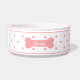 Roze Polka Stippen Op Wit Met Hondenbot & Naam Voerbakje