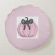 Waterverf van een roze pompoen met een zwarte polk-a-dot boog