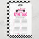 Dit is een Pink Race Car Alphabet Game Baby shower. *Alphabet Game - Gasten zullen een woord invullen dat te maken heeft met baby's voor elke letter van het alfabet. Wie de meeste woorden invult, wint!