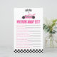 Roze Race auto die weet mama Baby shower spel