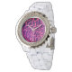 Roze Rhinestone Wit Emaille Horloge