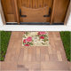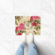 Roze en rode rozen op een achtergrond van crème en goudvocht, geaccentueerd door een monogrammed initiaal dat u zich kunt personaliseren, maken een elegante welkomstmat. Ontworpen door een wereldberoemde kunstenaar ©Tim Coffey.