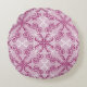 Het ontwerp van deze ronde kussen doet denken aan katoenhoudend snoep. Het heeft een delicaat rolwerkpatroon met een slappe, roze en witte design.