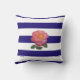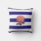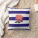 Roze Rose op Navy Blue en White Striped Throw Pil Kussen