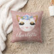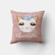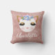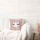 Roze roze roze gouden kattenprinseskussen. kattenprinses in roos goud, wazige roze en goudglitter, roze hartvormige neus en grote gouden glitteroogwriemen, met een kroon en roze en blauwe bloem. Roos gouden neusmousserende achtergrond. Pas eenvoudig jouw naam aan en voeg deze toe om de kussen aan te passen.