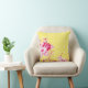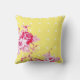 Deze roze rozen op gele Pillow met een roze bloem op een gele en witte poka stipachtergrond maken een geweldige aanvulling op uw Shabby Chic of Cottage Style Decor.