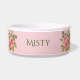 De gepersonaliseerde huiskom kenmerkt illustratie van roze rozen, met elegante klantgerichte tekst op pastelroze achtergrond.