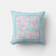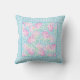 Een en vrouwelijk Sierkussen of kussen, met een patroon van lichtroze rozen op een hemelsblauwe achtergrond, gestippeld met kleine witte vlinders, met een grens van blauw en witte vinnen. Een deel van het collectie van Posh en Painterly Summer Days.