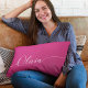 Roze Shimmer White Elegant Calligraphy Script Custom Personalized Name Sierkussennen kenmerkt een modern en trendy eenvoudig en stijlvol ontwerp met uw gepersonaliseerde naam in elegante handgeschreven kalligrafie script typografie op een metallic roze shimmer achtergrond. Ontworpen door ©Evco Studio www.zazzle.com/store/evcostudio