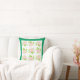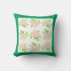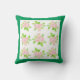 Een zeer gooi kussen of scatterkussen, met een patroon van ouderwetse roze rozen binnen een diepe groene grens, van een schilderij van de waterverf door Judy Adamson.