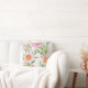 Een decoratief kussen versierd met levendige bloemenpatronen rust op een zacht oppervlak. De hoogtepunten, de ingewikkelde details van de bloemen en bladeren, het creëren van een warme sfeer.