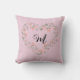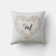 Roze Sinaasappel Bloemen en Groen Hart Monogram Kussen