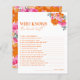 Veel plezier in je vrijgezellenfeest/vrijgezellenspel met deze coole game, met roze en oranje waterverf bloemige en bewerkbare tekst. Pas het indien nodig aan door te klikken op de "bewerken met ontwerpgereedschap".