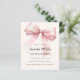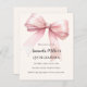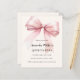 Een zacht beige, crèmekleurige achtergrond, versierd met een roze grote strik. Personaliseer en voeg een naam en partijgegevens toe. 1 vel = 1 uitnodiging bedrukt rand tot rand.
