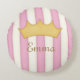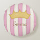 Roze Stripes Name Personalized Crowned Princess Rond Kussen