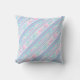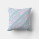 Een en vrouwelijk Sierkussen of kussen, met een patroon van diagonaal roze, turquoise en witte deckstoelstrepen en roze rozen: deel van het collectie "Zomdagen" van Posh & Painterly.