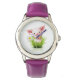 Roze varken in groengras horloge
