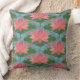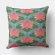 Een mooie Pillow of Cushion, met een patroon van roze waterlilies en blauwe libellen, van een handbeschilderd papieren collage door Judy Adamson. Uitstekend geschenk voor iemand met een verjaardag van juli; onderdeel van het collectie van Posh & Painterly 'Lily Pond'.