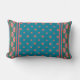 Een Lumbar Pillow of Cushion, met een mix-n'match-patroon van roze waterlilies op een diepblauwe achtergrond, van een handbeschilderd papieren collage door Judy Adamson. Een deel van het collectie van Posh & Painterly 'Lily Pond'.