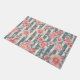 Een deurmat met een prachtig motief met roze bloemlagen over een gestreepte motief bestaande uit blauw en crèmekleurige strepen.