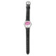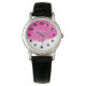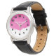 Een polshorloge met een schattig meisjesvormig ontwerp met een lichtroze waterverf verfsplaat.