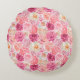 Een prachtig roze, witte, blush roze en magenta gekleurd rond accentkussen met bloemen