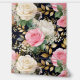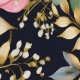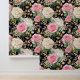 Waterverf elegante roze en witte rozen met baby's adem geschetst in goud op middernacht zwarte achtergrond behang.