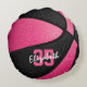 Dit gepersonaliseerde basketbalkussen voor meisjes heeft het realistische afbeelding van een basketbal met afwisselend roze en zwarte herkleurde panelen - personaliseer met de naam van de speler in een lettertype in "autograph"-stijl dat boven het jersey-nummer van de atleet ligt - van katz_d_zynes