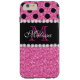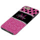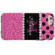 Roze monogram van de zwarte pokstip van glitter . Elke Clarke©. Oorspronkelijk ontwerp. Verkrijgbaar in andere kleurcombinaties in onze winkel Monogramgalerie © bij Zazzle. MODERN HOT PINK GLITTER (PRINTED FOTO EFFECT) MET PINK EN ZWARTE DOT PATROON, GEMONOGRAMMEERD MET JOUW NAAM, UW INITIAAL OF MONOGRAM OP EEN ZWARTE STRIPE OF BAND MET EEN GRENS VAN GEDRUKTE WITDIAMONDEN. TRENDY, CHIC COOL CUTE ONTWERP VOOR HAAR, TRENDSETTER, FASHIONISTA