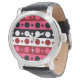 Roze Zwarte Witte Cirkel Sterren Stripes Design Horloge
