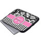 Roze zwarte witte Damask Striped laptophoes Laptop Sleeve