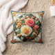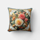 Een gedetailleerd bloemenkunstwerk heeft rozen in zachte tinten, omgeven door ingewikkelde gouden en groene elementen, met een verfijnde decoratieve stijl.