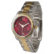 Goud en zilveren toonhorloge met een afbeelding van een verbluffend diep rood ruby. Optioneel gouden klokgezicht. Zie bijpassende ronde knop, ronde charm, druppeloorringen, grote ronde sleutelhanger van hoogwaardig metaal, ronde dubbelzijdige acrylsleutelhanger, wervelmetalen sleutelhanger en rond ketting. Zie het volledige collectie van het Horloge van de Gemstenen & van de Medallions in de sectie van de ACCESSOIRES.