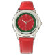 Versier je pols in stijl met dit horloge met een tweekleurige rode en groene gezicht en witte cijfers.
