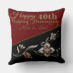 Een prachtig 40e trouwdag kussen voor mam en papa's robijnrood jubileum - Dit kussen beschikt over een bloemencluster op zwarte achtergrond en jubileumwensen in gouden belettering op robijnrode achtergrond. De tekst op dit kussen is volledig aanpasbaar en zal u toelaten om naar wens te bewerken.