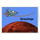 Een cartoon ruimteschip vliegt hoog boven een buitenaardse planeet. Een geweldig ontwerp voor die Sci Fi ventilatoren.