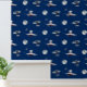 Dit is een digitaal verbeterde print van een behangpatroon met sciencefiction-thema met ruimtestations, raketten, planeten en sterren. U kunt de achtergrondkleur aanpassen.