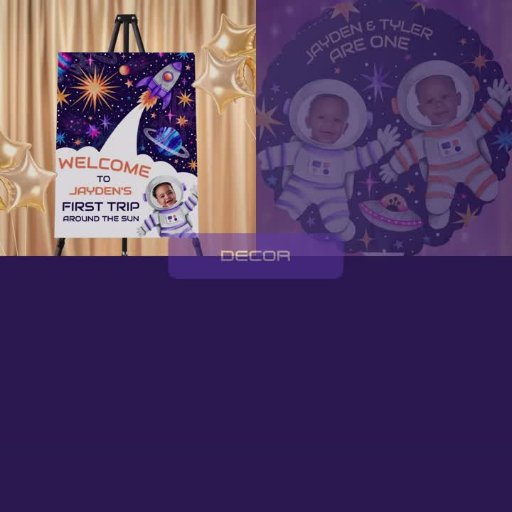 Dit ontwerp voor de buitenruimte heeft een astronaut omringd door planeten, een ufo, kometen en veel sterren. Je kan zowel de naam als de leeftijd aanpassen. Op de achterkant zweeft een raket in de ruimte met sterren. Zie de hele bijpassende collectie.