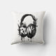 Bold black and white street art illustration of over-ear headphones with graffiti splatter and dripping paint effects, featuring the word RUN across the earcups, energetic urban hip-hop style, modern graphic design, sticker or apparel artwork.