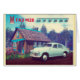 Een faux propaganda-afbeelding met een landelijke achtergrond van de vroege Sovjet-Unie na de oorlog. Geeft een GAZ M-20 Pobeda automobile aan, voor een dacha (plattelands zomerhuis). In het bovenste gedeelte van het afbeelding staat een "M20"-ornament, een Cyrillische (Russische) tekst die "Г А З" (GAZ) afleest en een ornament aan de zijkant dat op de voertuigen staat met een gestileerde Cyrillistische aflezing "П б е" (Pobeda). Het afbeelding is "oud" om te suggereren dat het uit de vroege periode na de oorlog dateert. Interne Sovjetpropaganda probeerde de mensen vaak te informeren over hoe goed leven in de USSR was. Een dacha en een auto om daar te komen betekende het goede leven. Stadsbewoners droomden ervan om een klein stuk land buiten de stad te hebben om op zomerweekends te vluchten, weg van de hitte en vuil van de stad. De Pobeda was de eerste auto die voor het publiek werd gemaakt na het einde van de wereldoorlog. De M20 werd van 1946 tot 1958 geproduceerd. GAZ (Г А З is een Russisch acroniem voor Gorkovsky Avtomobilny Zavod - Gorsky Automobile Factory) Pobeda (П о б е) is het Russische woord voor de overwinning. De naam werd gekozen omdat de auto voor het eerst werd getest in 1943, toen een geallieerde overwinning in de Tweede Wereldoorlog waarschijnlijk begon te lijken.De Pobeda werd geproduceerd onder licentie in Polen en een paar werden geassembleerd in Noord-Korea. De Pobeda was de eerste naoorlogse sovjetauto en de eerste sovjetauto met draaischijf, twee elektrische wissers, een elektrische verwarmingstoestel en een ingebouwde AM-radio. De auto werd een symbool van het naoorlogse Sovjet-leven en is vandaag een onderdeel van de collector. In totaal werden 235.997 Pobedas geproduceerd. Een aantal M20's is de afgelopen jaren uitgebreid aangepast. Er zijn zelfs een paar 'spierauto'-versies op de weg.