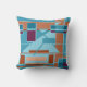 Een mengeling van vormen en kleuren - tinten blauwgroen blauw, koraal en roest sinaasappel, met bordeauxrode elementen - in een gedurfd, hedendaags, geometrisch ontwerp is te zien in een op het midden van de eeuw geïnspireerde moderne look. Het afbeelding projecteert een gedurfde, warme en levendige kwaliteit en projecteert een gepolijste, bijna feestelijke, zeker vrolijke en stijlvolle kwaliteit voor woonkamer, slaapkamer, werkruimte, terras of patio-inrichting. Er is ook een gevoel van kalmerende rust, een ontspannen en comfortabele sfeer voor uw persoonlijke thuisruimte. Er zit veel decoratief potentieel in dit accentstuk, dat past in een groot aantal stijlen, van retro/ tot rustieke ranch tot moderne urban loft of hoogbouw.