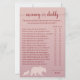 Add fun and laughter to your woodland baby shower with this Mommy or Daddy game card! Guests will guess who is more likely to do certain parenting tasks – mommy or daddy – making it a playful and interactive activity for everyone. Featuring a sweet mama and baby bear on a blush pink background, this rustic game card is perfect for celebrating the parents-to-be while keeping guests entertained.