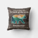 Decoratorkussen voor de familie berg/wildernis thuis. Een beer met groene bergen en een kompas zit op een roestbruine achtergrond. tekst zegt: "Welkom in onze nek van de bossen." Pas verder aan uw familienaam en de locatie van uw huis aan. Of kies andere tekst.