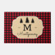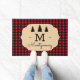 Voeg wat feestvreugde toe aan uw voorste veranda of ingang met dit stijlvolle, gedurfde model. Het rode en zwarte gebuffelvormig design van het controlebord zorgt voor een warme bosgrond voor onze deur. Het is perfect voor herfst en kerstversiering! Het model bevat de monogram en de naam van uw familie in een script dat is voorzien van zwarte bosboomsilhouettes hierboven.