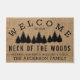 Welkom uw gasten in uw huis met dit plattelands-, boerderijmodel met de woorden "WELKOM TO ONZE NECK OF THE BOSSEN, MICHAEL, ELIZABETH, BRAYDEN & ALEXA THE ANDERSON FAMILY" in zwarte typografie met pijnbomen op een faux burlap achtergrond. Pas deze vlek aan door uw eigen persoonlijke familiegegevens toe te voegen. Een perfecte bruiloft, een jubileum of een cadeautje voor de huisopwarming. Klik op deze sjabloon personaliseren om de namen en alle andere woorden te wijzigen. Als je hulp nodig hebt bij het aanpassen, kun je me een e-mail sturen naar @gmail.com. Bedankt voor stoppen door www.zazzle.com/WhisperingPines. ©Karen Hall
