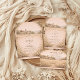 A romantic countryside scene with a softly painted stone chapel, rolling fields, and delicate garden florals framing the design. The warm neutral tones and old-world European landscape create a timeless, elegant atmosphere inspired by rural estates and outdoor celebrations. Ideal for couples drawn to classic countryside charm with a refined, romantic feel.