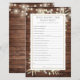 Met snaarlampen en delicate waterverf groen bladeren op een rustieke houten achtergrond, kan dit leuke vrijgezellenfeest spel worden gepersonaliseerd met uw eigen die de bruid de beste vragen kent. Ontworpen door Thisnotme©