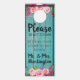 Deze roestbloem stoort Floral door Hanger kenmerkt geen blauwe houtachtergrond met trendy zwarte manuscripten die met een florele bouquet van de waterverf van het roos met groene afwerking langs de bovenkant en de bodem van het ontwerp worden versierd. Aan de voorkant staat het teken: "Niet storen, we bleven te laat met de nieuwe Mr en Mrs. (Jouw naam hier)." Op de achterkant staat: "Gefeliciteerd met de nieuwslede, de heer en mevrouw. (Jouw naam hier). Pas de doopvont en de kleur van de tekst aan uw het houden van aan.