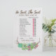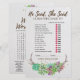 Dit nette, sappige huwelijkswoordzoekspel is perfect voor een plattelands- of woestijnvormig vrijgezellenfeest. Aan de voorkant van de spelkaart staat "hij zei dat ze zei", wat een leuke quiz is over de bruid en bruidegom. Op de achterkant van de kaart staat een woord met huwelijkswoorden en zinnen. Het ontwerp is voorzien van prachtige kleurrijke groene, roze en paarse succulenten die zijn aangebracht op een tak met een kruid en zijn voorzien van faux gold confetti. Pas de gamekaart aan met de bruidsnaam. Neem contact met mij op met alle ontwerpaanpassingen die u nodig hebt. Ontworpen met zorg door Miriam op Fresh & Yummy Paperie. Ga voor het coördineren van objecten naar mijn Zazzle winkel: