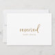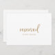 Dit unieke gouden script is perfect voor een landbruiloft. De kaart is dubbelzijdig (prints aan beide zijden). Het eenvoudige en moderne goud- en witte design is voorzien van een unieke whimsical handgeschreven kalligrafie met een hedendaagse, minimalistische stijl. in elke kleur. Houd het ontwerp minimaal en simplistisch, zoals het is, of personaliseer het door uw eigen grafiek en kunstwerk toe te voegen. Gebruik deze kaarten om stoelen of tafels te reserveren bij uw trouwceremonie, ontvangst of om het even welke gebeurtenis.